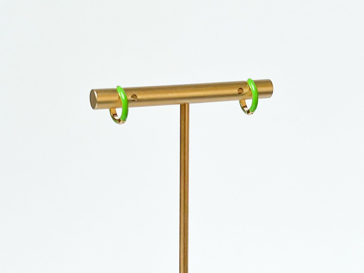 Product Materials/Dimensions: 14k gold plated brass. Green enamel. 11mm huggies.