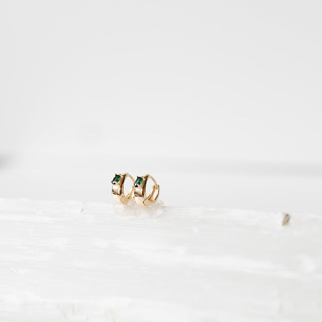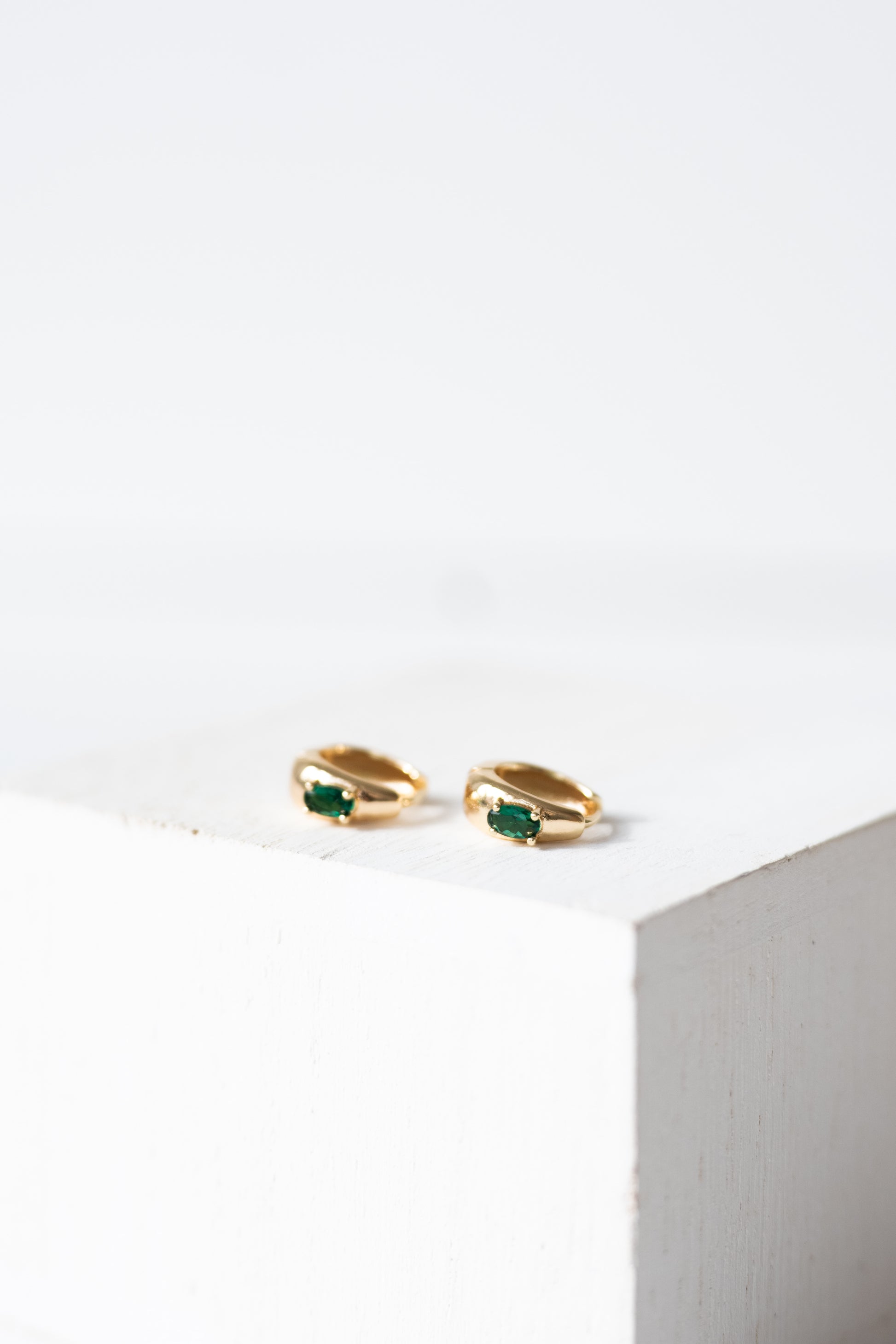 Named after the picturesque coastal town in Italy, the gold, oval-shaped Portofino Huggie earrings feature a single emerald stone on each. With their comfortable fit and versatile design, these oval huggies can be styled alone for a chic minimalist look or stacked with other earrings to create a trendy and personalized style.