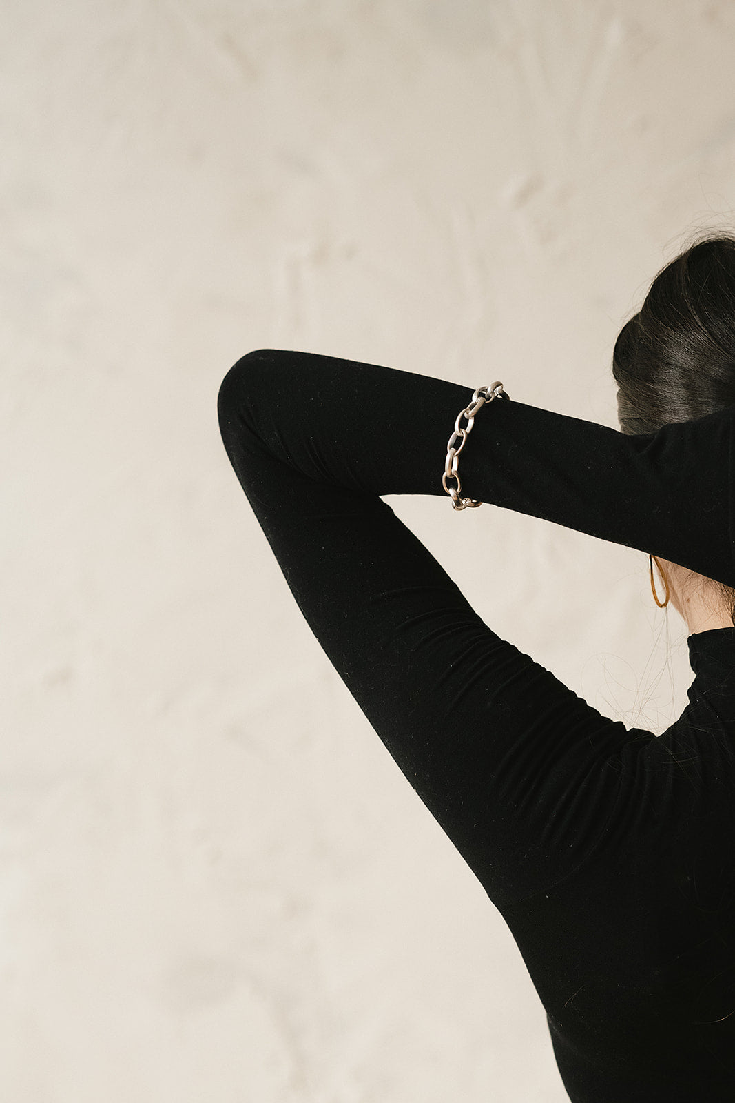 Introducing the River Bracelet from Anima Mea's Crisp Collection—a statement bracelet that captures the essence of modern style. This matte silver chunky cable chain bracelet is the epitome of contemporary elegance. The seamless matte silver clasp effortlessly blends into the chain, creating a sleek and cohesive design.