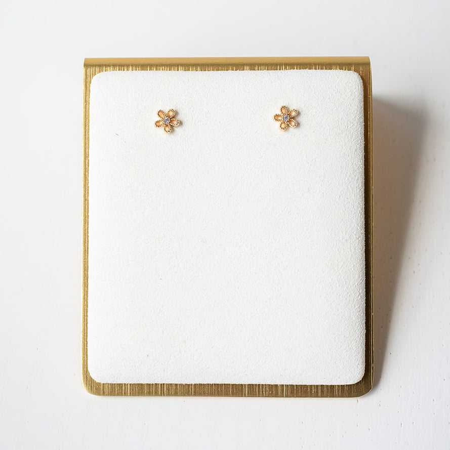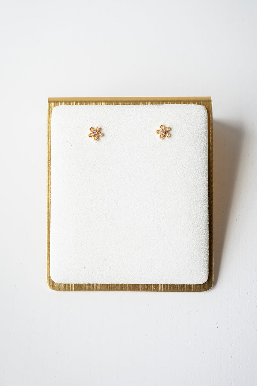 Materials & Dimensions: 6mm flower earrings. 18k gold plated brass. Lead and nickel free. CZ stones.