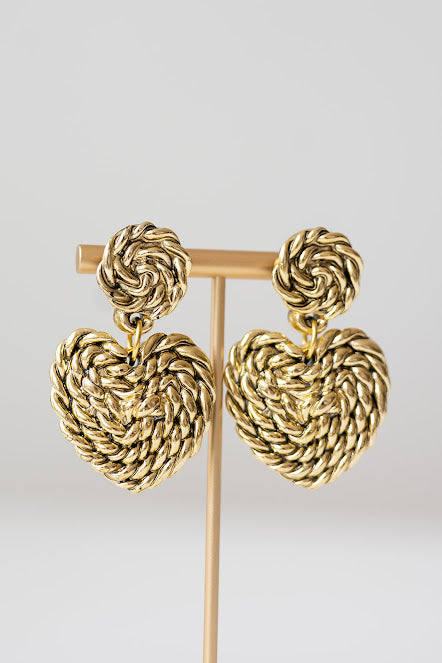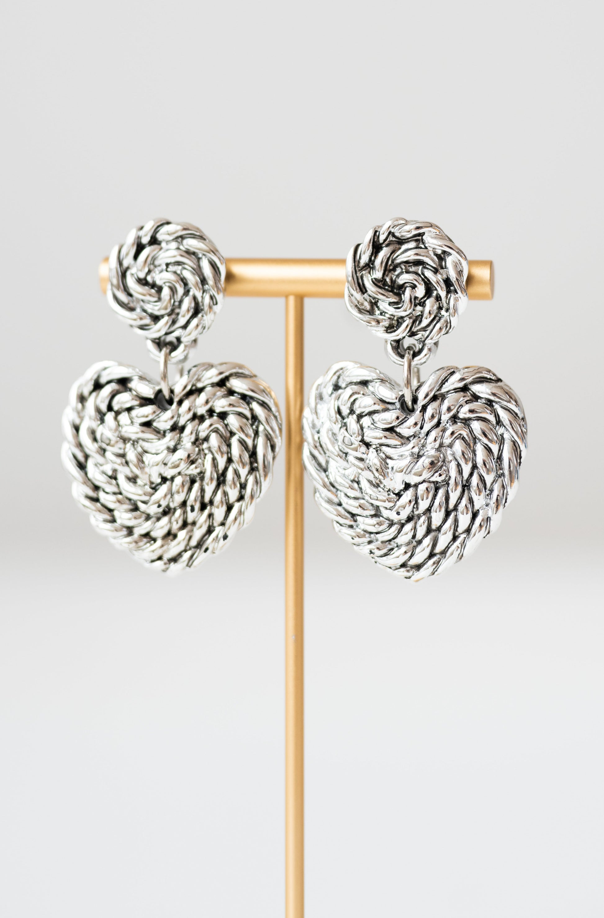 Introducing our exquisite roped lucite drop heart earrings, a rare find in the world of antique jewelry. Crafted with meticulous attention to detail, these earrings exude an air of timeless elegance. Available in your choice of gold or silver metallic lucite, adorned with a captivating black wash antique finish, the Verona Heart Earrings are sure to make a statement.